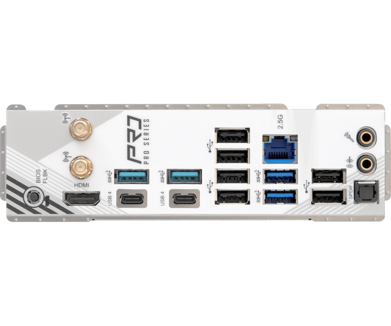 ASROCK X870 PRO RS WIFI | CPU : AMD Socket AM5 Ryzen 9000, 8000 and 7000 Series Processors | Chipset : AMD Promontory X870 | Memory : 4 x DDR4 DIMM Slots, support DDR5 8000, Max. 256GB | Graphics : graphics output options: USB4, HDMI | Audio : 7.1 CH HD Audio | LAN : 2.5 Gigabit LAN | WIFI: WIFI 7,BLUETOOTH 5.4 | Slots : 1 x PCI Express 5.0 x16 Slot , 1 x PCI Express 4.0 x16 Slot | Storage : 1 BLAZING M.2 Socket , 1 ULTRA M.2 Socket , 2 x SATA3 6.0 Gb/s Connectors, 1 x HYPER M.2 Socket | 3 YR WARRANTY