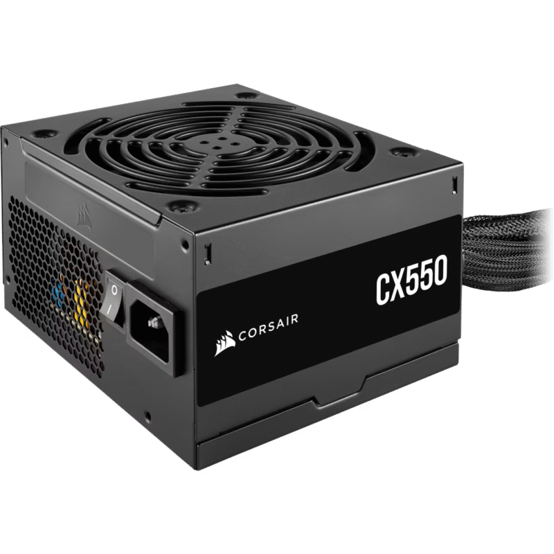 NAME : CORSAIR 550W CX 550W | EPS Connector : 1 | SATA Connector : 3 | Fan Bearing Technology : Sleeve | Modular : No | Cable Type : Type 4 | PCIe Connector : 2 | PSU Form Factor : ATX | Fan Size : 120mm | Continuous Power : 550 Watts | ATX Connector : 1 | ATX12V Version : v2.31 | MTBF Hours : 100,000 hours | 80 PLUS Efficiency : Bronze | Warranty : 5 Year | AC INPUT : 100–240V | INPUT CURRENT : 10A-5A | FREQUENCY : 47~63Hz
