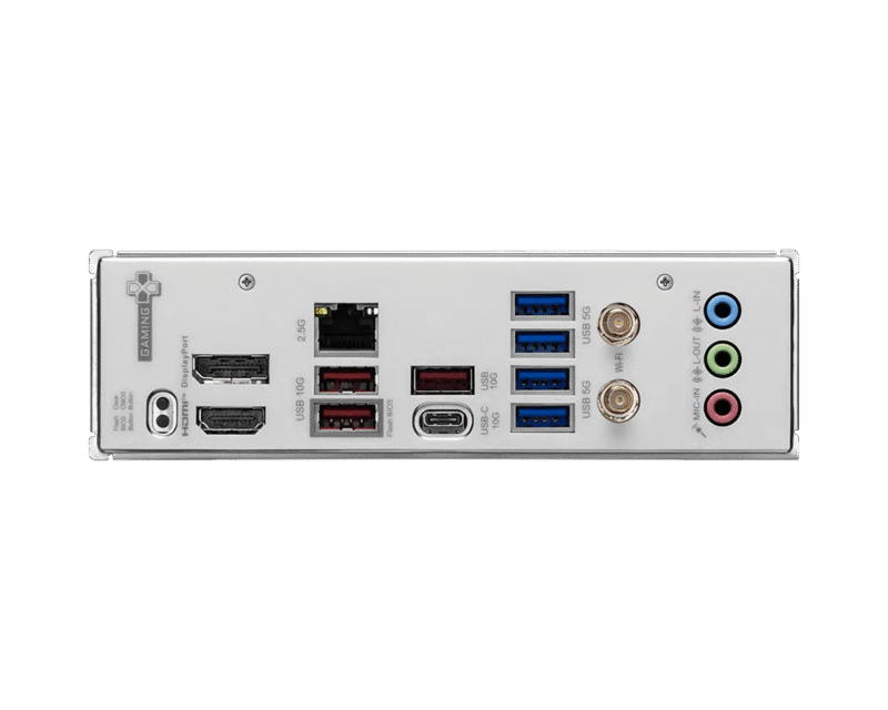 MSI B850 GAMING PLUS WIFI6E | CPU Support Supports AMD Ryzen 9000 / 8000 / 7000 Series Desktop Processors | CPU Socket : AMD Socket AM5 | Chipset : AMD B850 Chipset | Expansion Slots : 1x PCIe 4.0 x16 slot , 1x PCIe 4.0 x4 slot , 1x PCIe 3.0 x1 slots | Display Interface : Support 4K@60Hz as specified in HDMI 2.1 DisplayPort 1.4 Requires Processor Graphics | Memory Support : 4 DIMMs, Dual Channel DDR5-8200+ MT/s (OC) | Storage : 1 x M.2 Gen5 x4 128Gbps slot , 1 x M.2 Gen4 x4 64Gbps slot , 4x SATA 6Gbps ports | USB ports : 5 x USB 10Gbps (3 Type-A + 2 Type-C), 6 x USB 5Gbps (6 Type-A), 4 x USB 2.0 | LAN : Realtek 2.5G LAN | Wireless/Bluetooth : Wi-Fi 6E Solution , Bluetooth 5.3 | Audio : 8-Channel (7.1) HD Audio with Audio Boost | 3 YEAR WARRANTY