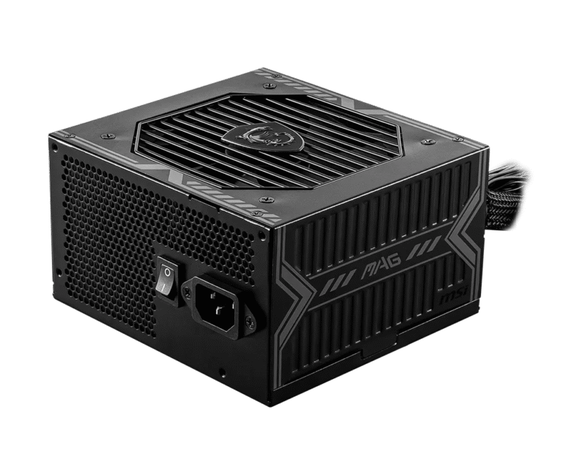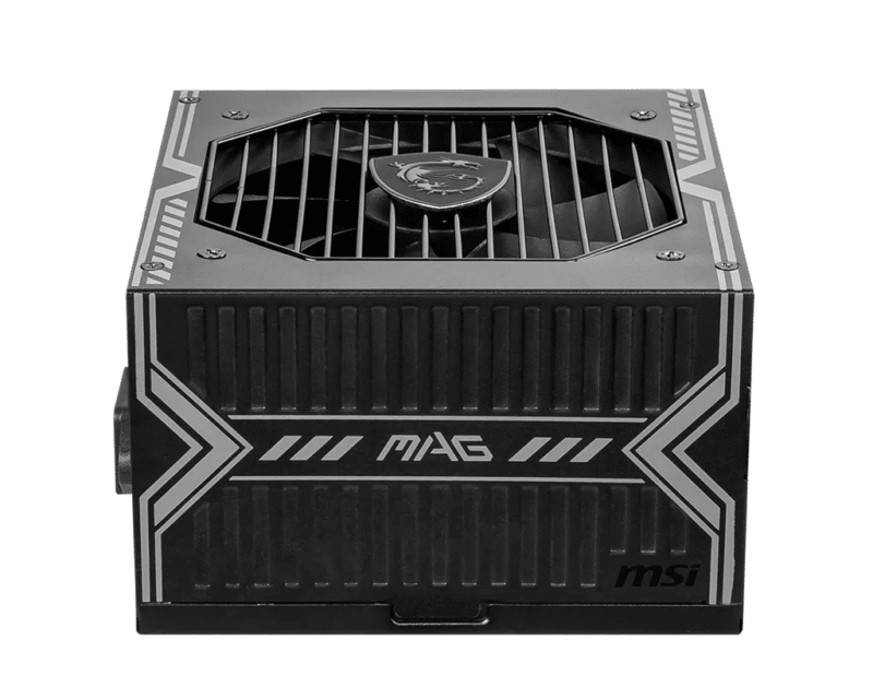 MSI MAG A550BN | Form Factor : ATX | Rated Wattage : 550W | Efficiency Rating : 80 PLUS Bronze (up to 85%) | Modular : Non Modular | Fan Size : 120 mm | Fan Bearing : Sleeve Bearing | PFC Type : Active PFC | Input Voltage Range : 100~240 VAC | Input Frequency Range : 50~60 Hz | Protection : OCP / OVP / OPP / OTP / SCP | ATX (24 pin) : 1 | EPS (8 pin) : 1 | PCI-E (6+2 pin) : 2 | SATA (15 pin) : 5 | PERIPHERAL (4 pin) : 2 | FDD (4 pin) : 1 | 5 YEARS WARRANTY