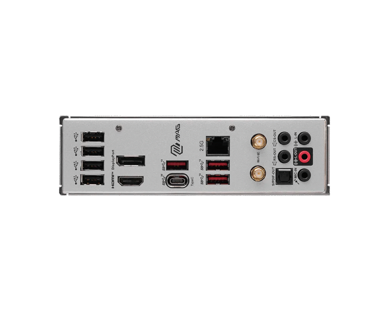 MSI MAG B760M MORTAR WIFI II | CPU Support : Support Intel Core 14th/ 13th/ 12th Gen Processors, Intel Pentium Gold and Celeron Processors | CPU Socket : LGA 1700 | Chipset Intel : B760 Chipset | Expansion Slots : x PCIe 5.0 x16 slot , 1x PCIe 3.0 x1 slots | Display Interface Support : 4K@60Hz as specified in HDMI 2.1, DisplayPort 1.4 Requires Processor Graphics | Memory Support : 4 DIMMs, Dual Channel DDR5-7800+MHz (OC) | Storage : 3x M.2 Gen4 x4 64Gbps slots , 4x SATA 6Gbps ports | USB ports : 1x USB 3.2 Gen2x2 20Gps(Type-C) , 1x USB 3.2 Gen2 10Gps(Type-C), 3x USB 3.2 Gen2 10Gps (Type-A), 2x USB 3.2 Gen1 5 Gps (Type-A), 8 x USB 2.0 | LAN : RTL8125B 2.5Gbps LAN | Wireless /Bluetooth : Intel Wi-Fi 6E, Bluetooth 5.3 | Audio : 8-Channel (7.1) HD Audio with Audio Boost | 3 year Waranty